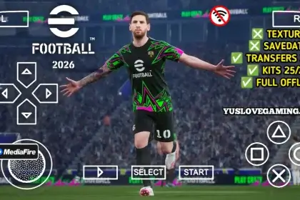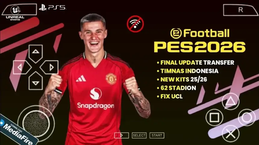 Download eFootball PES 2026 PPSSPP Android Offline with new UCL & league kits for 25/26 season, 4K graphics, smooth gameplay, and latest transfers.