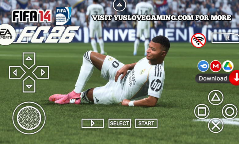 FIFA 14 MOD EA SPORTS FC 26 PPSSPP ISO ANDROID OFFLINE PS5 GRAPHICS ULTRA HD UPDATED TRANSFERS 2026 NEW KITS REAL FACES FULL COMMENTARY HIGH FPS DOWNLOAD | FC 26 PSP