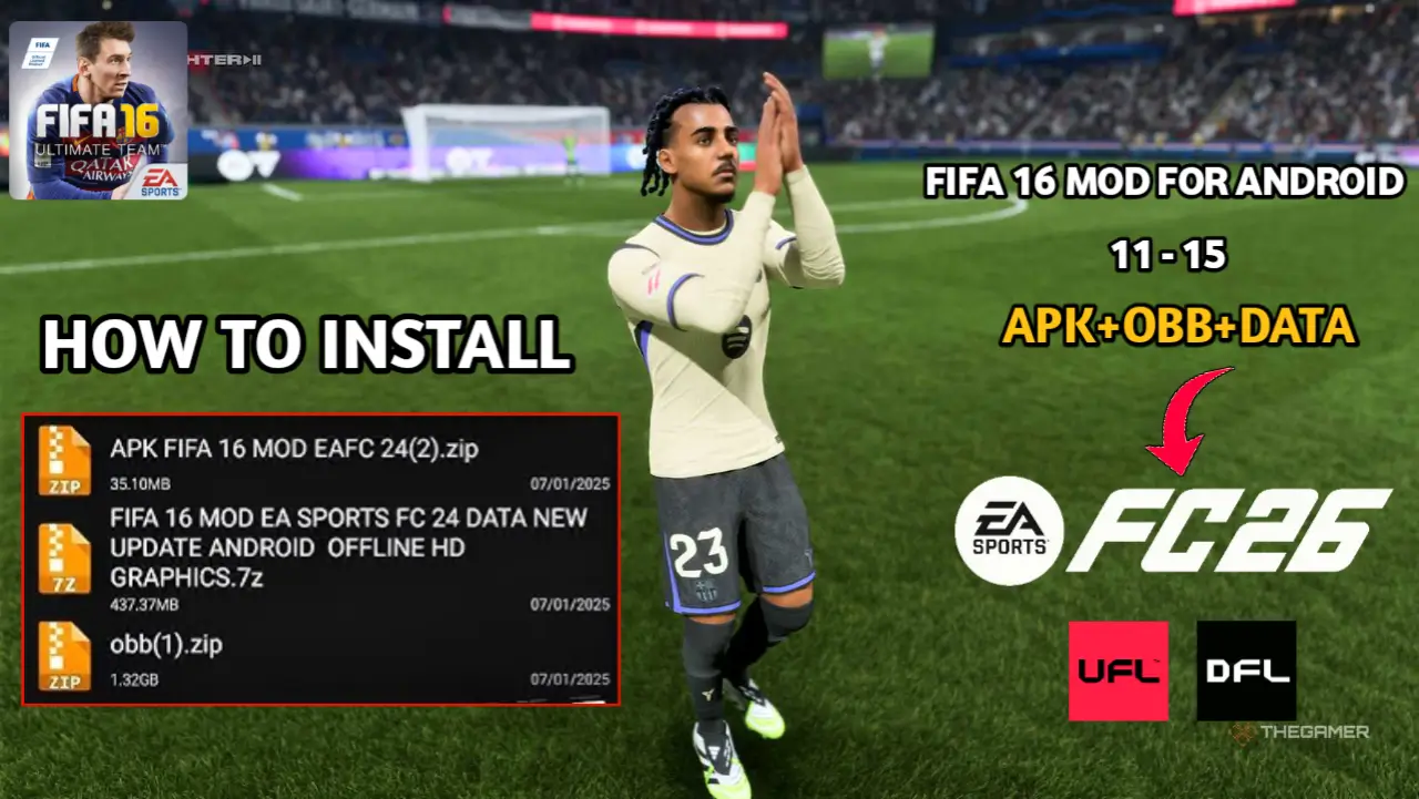 Installing FIFA 16 Mod EA SPORTS FC 26, DFL 26, and UFL 26 on Android is now simple with this guide. All three mods offer offline football gameplay, updated 25/26 season kits, real faces, and smooth performance. By following the APK + OBB + DATA installation steps, you can enjoy immersive football experiences on your mobile device without errors.